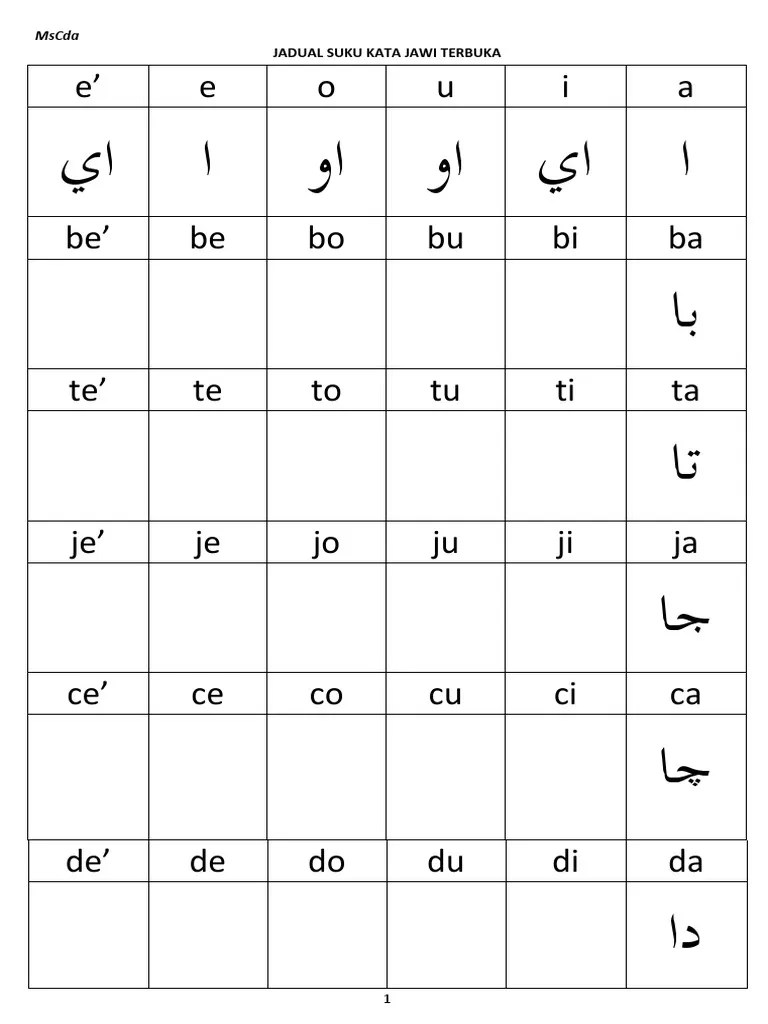 Contoh Huruf Jawi Suku Kata Terbuka Jawi : Latihan 50 Suku Kata Terbuka Jawi Cikguzim Alphabet Worksheets Preschool Alphabet Worksheets Arabic Alphabet For Kids. Suatu suku kata dalam bahasa arab bisa berupa suku kata terbuka (berakhiran vokal) atau suku kata tertutup (berakhiran konsonan): 19.01.2013 · nota tatacara perjumpaan ppim 1. Dari wiktionary bahasa indonesia, kamus bebas. اميريک شريکت , bahasa inggeris: Hier sollte eine beschreibung angezeigt werden, diese seite lässt dies jedoch nicht zu.